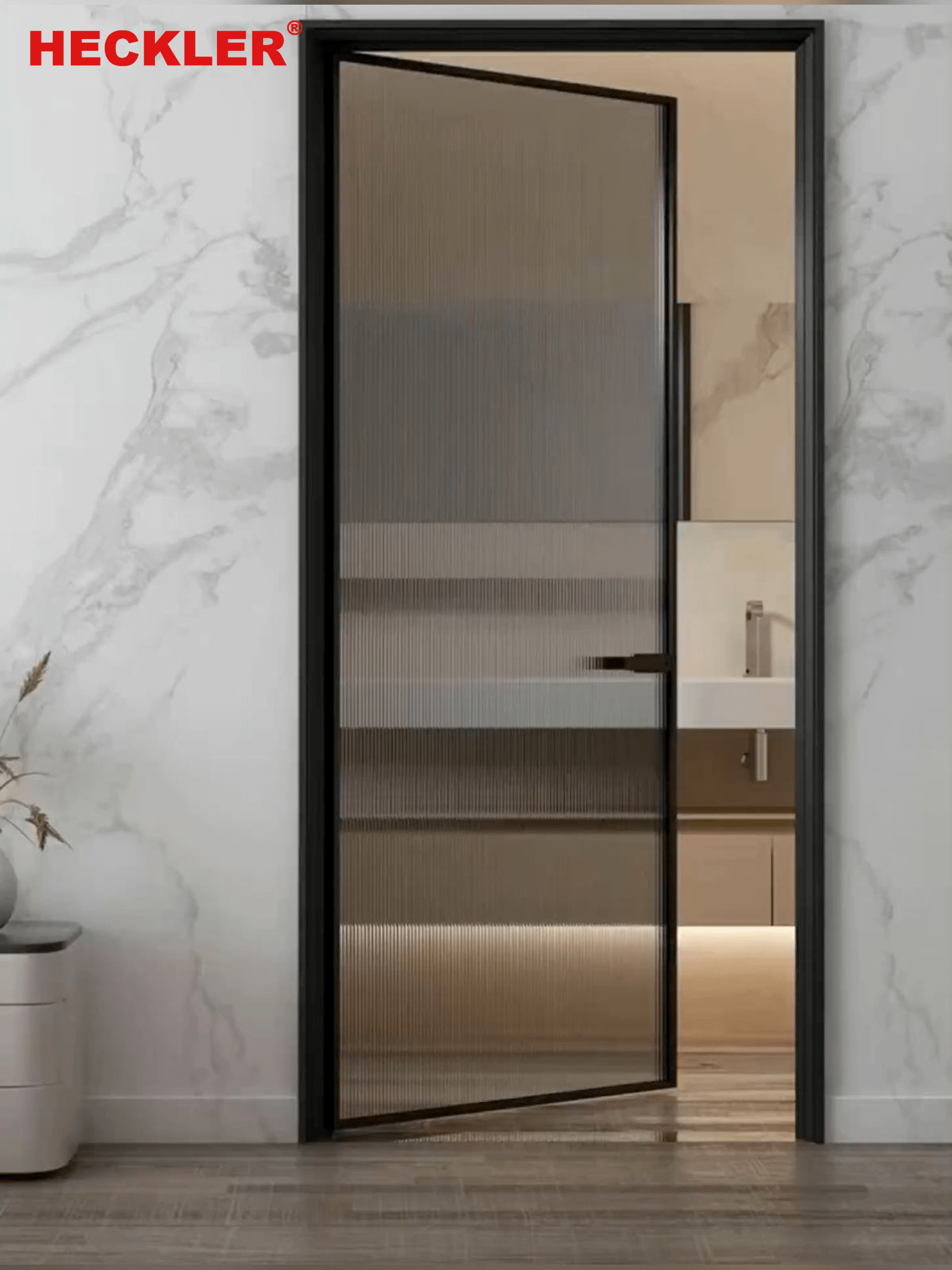 Cửa slim mở quay 1 cánh Heckler với khung nhôm siêu mảnh, kính cường lực và phụ kiện đồng bộ. Thiết kế hiện đại, vận hành êm, kín khít cao, phù hợp cửa phòng, ban công và các không gian cần sự tinh tế, sang trọng.